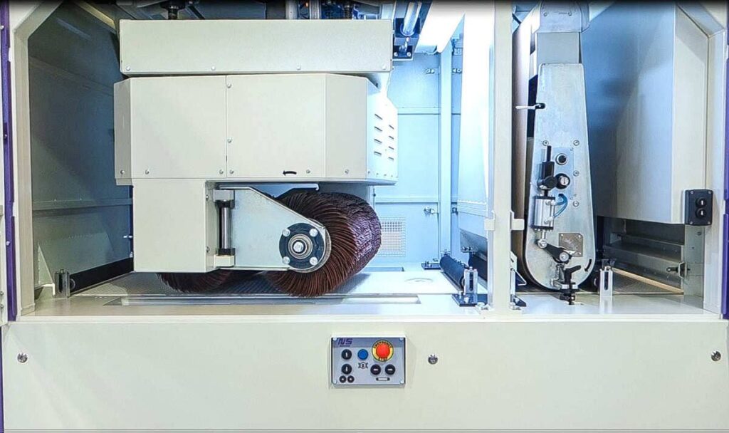 DM660 ZPK features an integrated vacuum table and a 3 movement system of the brushing head, assuring a high consistency. It is possible to work parts up to 660mm width and some as small as 50x50mm.