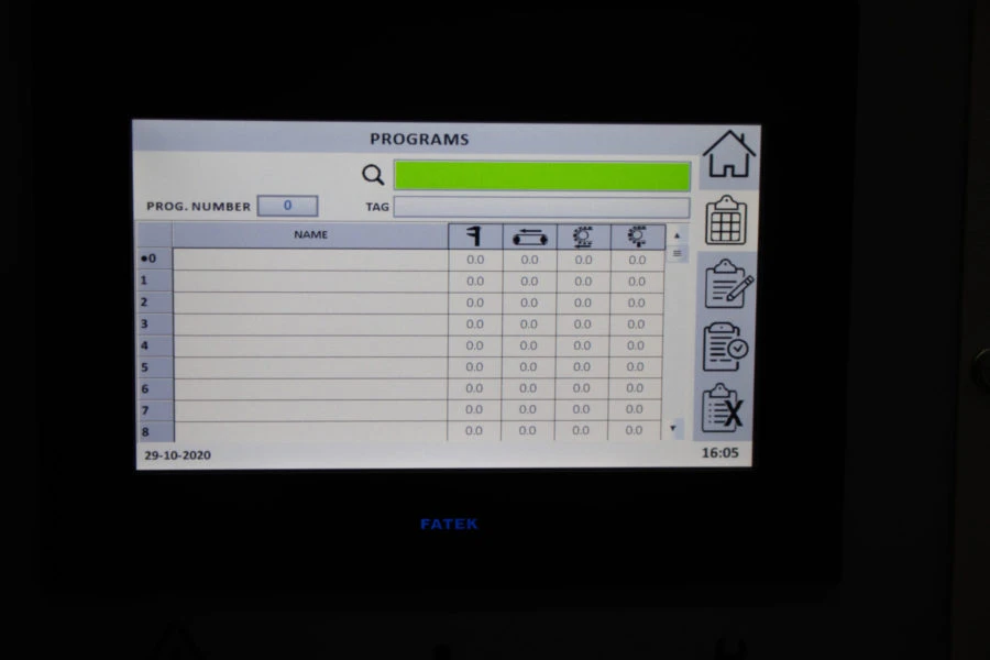 Über ein intuitives und benutzerfreundliches Touchscreen-Bedienfeld kann der Bediener alle in der SPS des Geräts gespeicherten Programme auswählen und anpassen.