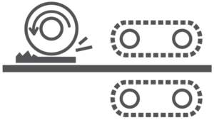 Dank des 3-Förderband-Systems und seiner robusten Konstruktion kann die Maschine bei gleichem Schleifdruck auf Ober- und Unterseite des Teils gleichbleibende Ergebnisse in einem stabilen Betrieb erzielen. Weiterhin sorgt der Gummi mit seiner starken Haftfähigkeit, aus dem alle 3 Förderbänder bestehen, dafür, dass die Teil die ganze Zeit an Ort und Stelle bleiben. Und da das sichere Haften der Metallteile auf dem Förderband ein grundlegender Aspekt jedes Entgratungs- und Kantenrundungsprozesses ist, wurde auch ein System integriert, das kontinuierlich Staub vom Förderband abbürstet. Dieser abgebürstete Staub fällt an Ende des Transportbandes in eine Schublade.