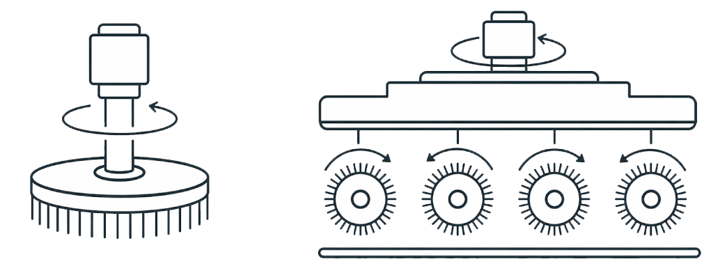 Nos sistemas rotativos multi-escova, estas limitações tornam-se ainda mais críticas: