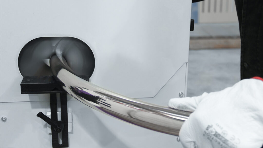 A ML75 é uma máquina de acabamento ideal para tubos redondos com diâmetros de até 76 milímetros com raio de curvatura apertada.